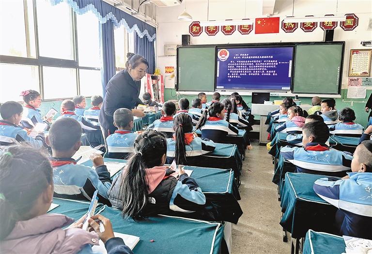圖為檢察官正在教室內為學生講解法律知識。記者 旦增嘎瓦 攝