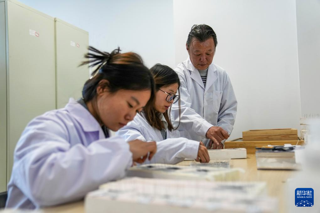 達娃在位于拉薩的西藏自治區(qū)高原生物研究所識別蝴蝶樣品特征(4月22日攝)。新華社記者 旦增尼瑪曲珠 攝