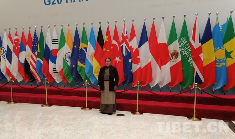 圖為2019年12月瓊結(jié)縣政協(xié)組織政協(xié)委員到杭州視察工作時(shí),桑吉在G20峰會(huì)杭州主會(huì)場留影。