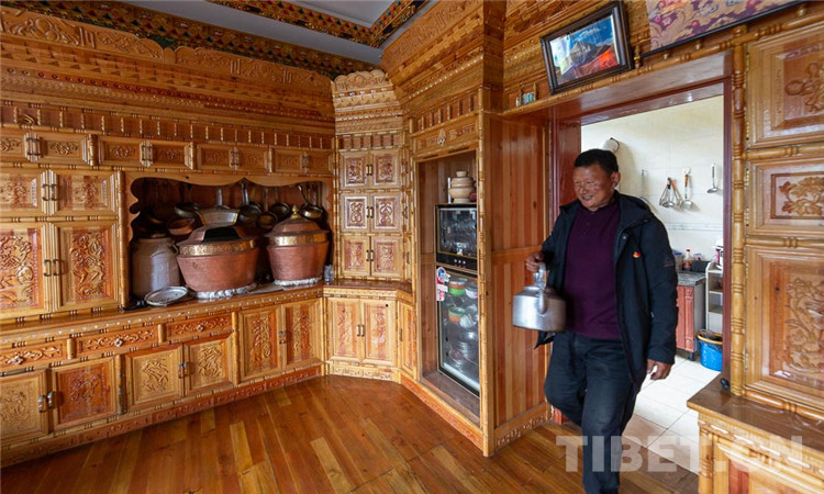 來到村民仁青家里,仁青正在煤氣灶上燒水?!捌綍r自己在工地上開裝載機(jī),現(xiàn)在家庭年收入10多萬元?!闭勂瓞F(xiàn)在的生活仁青開興地說,以前只有過年才可能吃到的大米,現(xiàn)在已經(jīng)是每家每戶的家庭便飯。