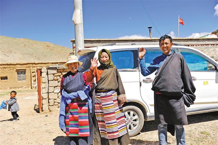 走在小康路上的班戈縣多爾格村古如堅參一家準(zhǔn)備出行的情景。