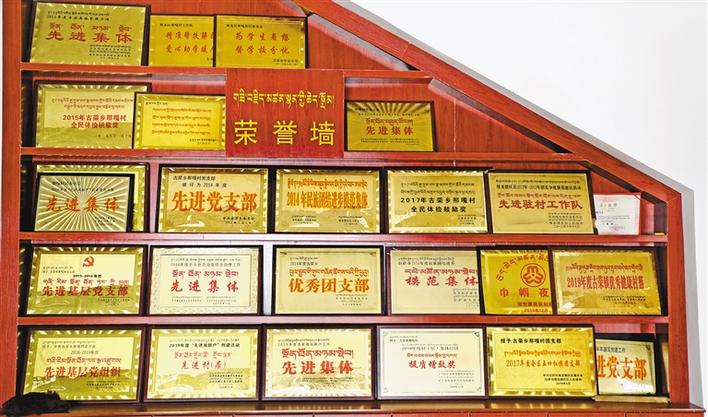 那嘎村脫貧戶扎西多吉家的獎(jiǎng)狀墻。