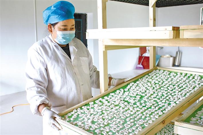圖為尼瑪在林周縣德?tīng)柨缔r(nóng)畜農(nóng)民專(zhuān)業(yè)合作社制作奶渣。 記者 央金 攝