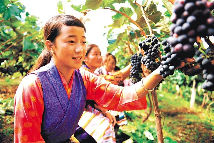 麥曲河畔,察雅縣的蘋果熟了,紅彤彤的蘋果散發(fā)著誘人的清香;藏東西南,洛隆縣的糌粑飄香,糌粑廠內(nèi)熱火朝天生產(chǎn)忙;大山深處,西藏昌都市類烏齊縣扎西次措成立的創(chuàng)業(yè)就業(yè)基地,帶動全縣貧困婦女就業(yè)增收;茶馬古道上,芒康縣加它村黨支部書記江措拿起畫筆,勾勒起“脫貧花開節(jié)節(jié)高”的美麗畫卷……