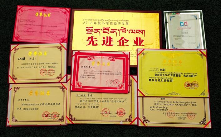 旦巴塔青榮獲的各種榮譽(yù)證書。