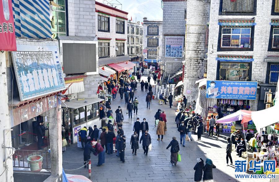 人們在拉薩市沖賽康市場逛街購物(2020年2月14日攝)。新華社記者 張汝鋒 攝