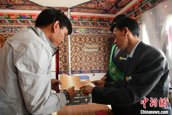 圖為農(nóng)行日土縣支行工作人員為村民宣講貸款政策?!∝暩聛硭?攝
