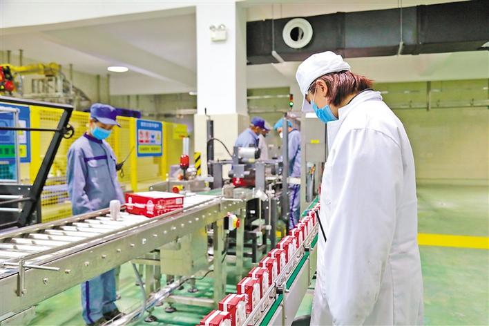 圖為奶制品加工流水線作業(yè)。記者 劉斯宇 攝