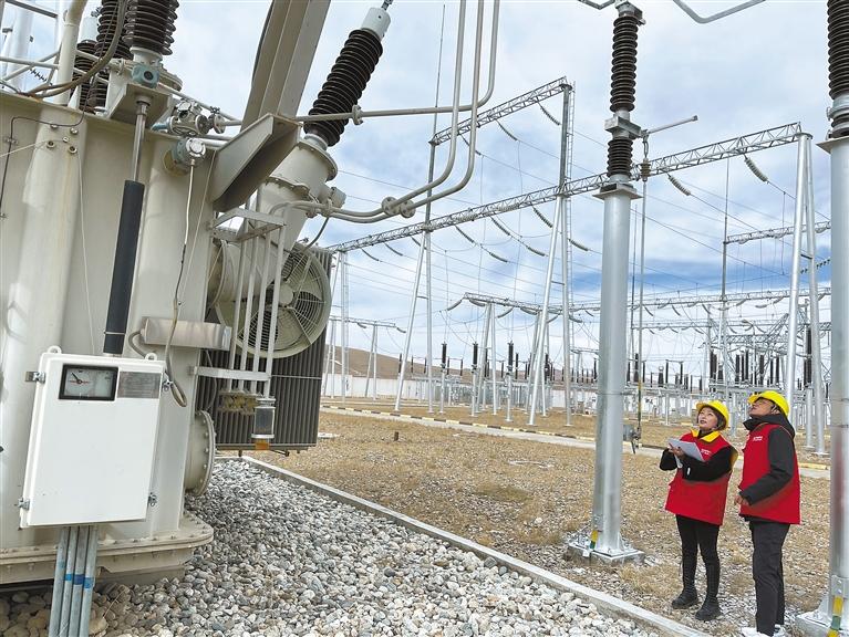 圖為國網(wǎng)那曲供電公司變電運檢中心員工在對110千伏那曲變電站設(shè)備進(jìn)行檢查。記者 萬靖 攝