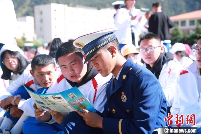 圖為林芝市森林消防支隊走進(jìn)校園宣傳防火知識?!∥骼@拉翁 攝