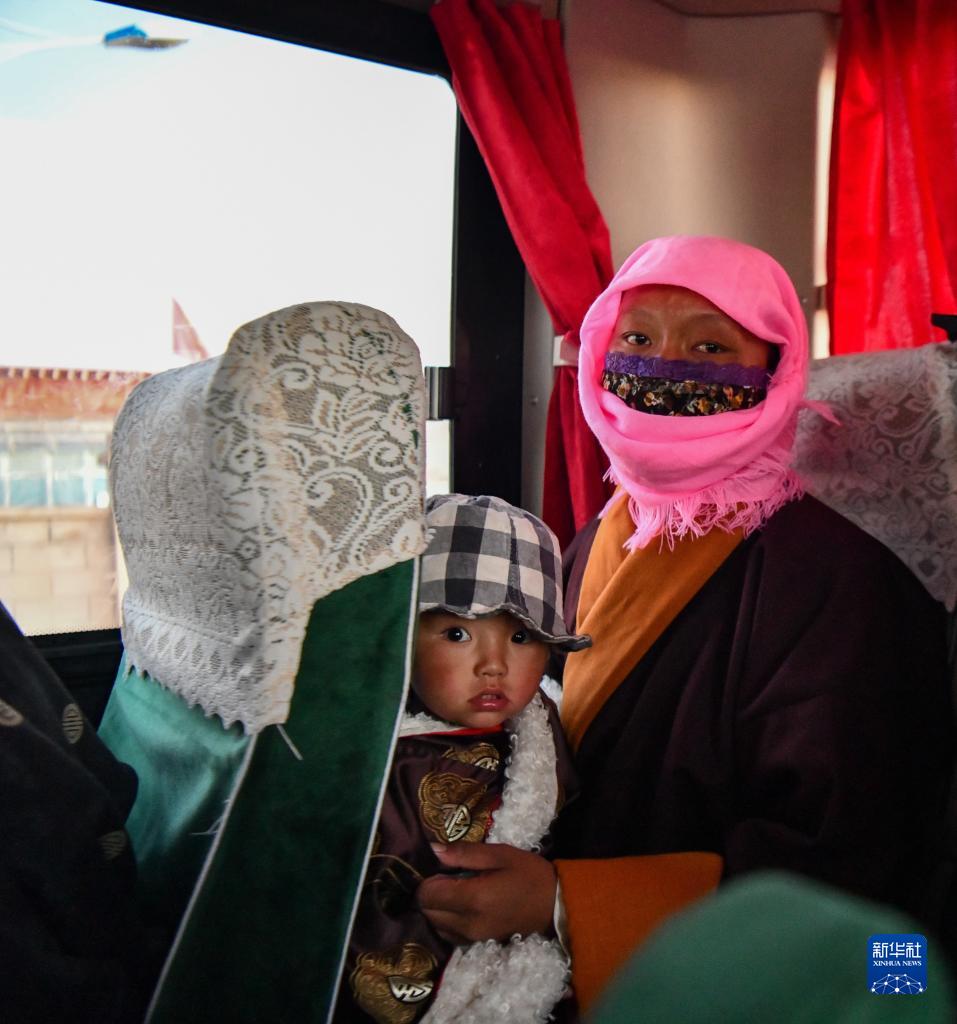 一陣陣激昂的藏戲鼓聲、一聲聲“歡迎到家”的美好祝福,當地群眾手舉象征五谷豐登的“切瑪盒”,逐一獻上哈達,迎接新鄰居。