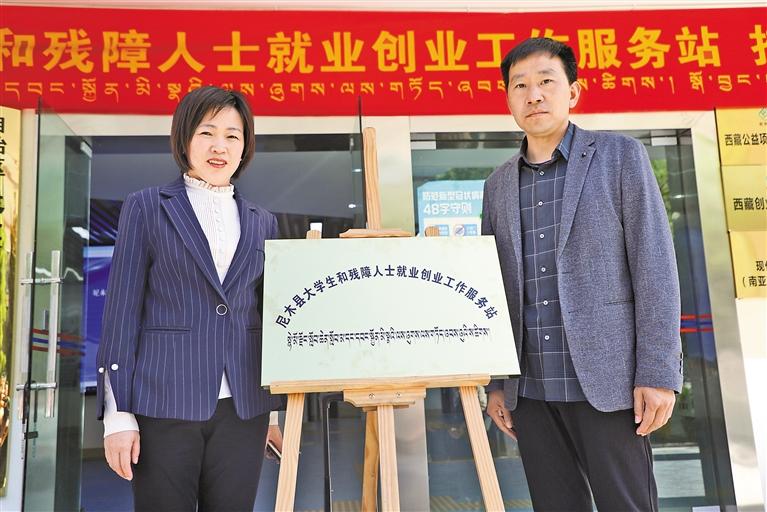 尼木縣大學生和殘障人士就業(yè)創(chuàng)業(yè)工作服務(wù)站揭牌儀式現(xiàn)場。