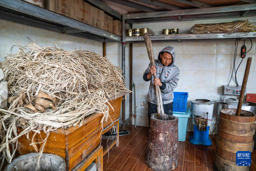 在西藏米林市羌納鄉(xiāng)西嘎門巴村,南迦巴瓦童螺嘎布工藝品農民專業(yè)合作社的工作人員正在制作藏紙(7月26日攝)。新華社記者 孫非 攝