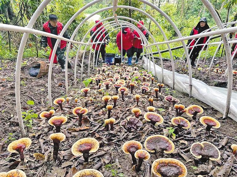 圖為專(zhuān)業(yè)技術(shù)人員指導(dǎo)當(dāng)?shù)厝罕姴烧兹忪`芝。記者 胡文 攝