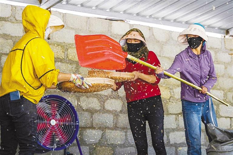 圖為村民們在揚場。 記者 阿旺尼瑪 攝