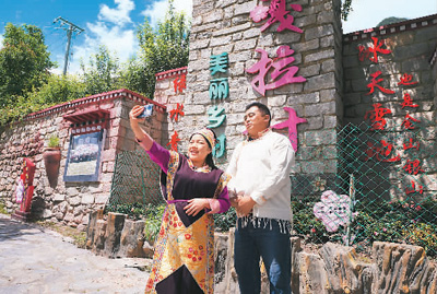 村民巴珍家的藏式小樓,院內鮮花簇簇、室內溫暖如春,二樓的3個房間租給旅游企業(yè)用作客房?!耙荒攴孔馐杖胗?萬多元,我在旅游公司打工,月工資4000多元,一年收入七八萬元,關鍵是工作生活都在自己村里,簡直是太方便了?!卑驼浜軡M意現在的生活。旦增達杰介紹,光房屋租金一項,村民戶均年增收3萬多元。