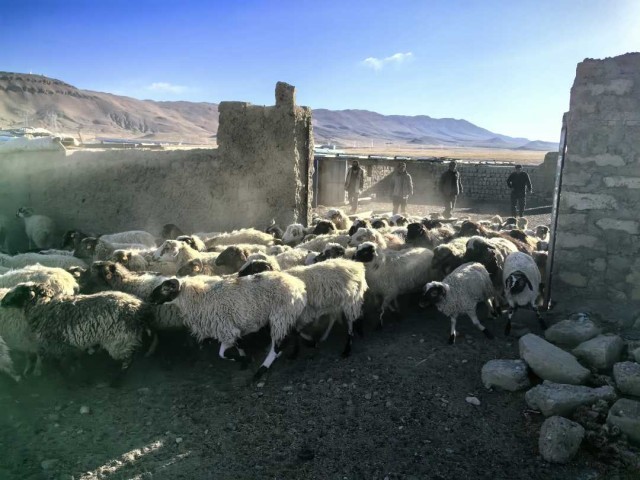 太陽(yáng)翻過(guò)雪山,灑滿西藏日喀則市崗巴縣崗巴鎮(zhèn)雪村的大地時(shí),穿著羊皮袍子、皮膚黝黑的扎西多杰準(zhǔn)時(shí)打開(kāi)了圈門(mén)。隨著此起彼伏的“咩咩咩”聲,羊群就像開(kāi)閘的洪水般傾瀉而出,踏出滾滾塵煙。