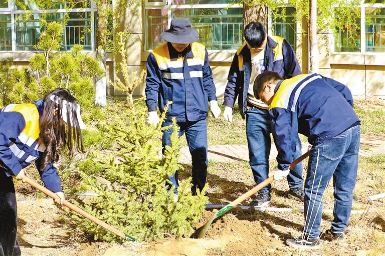 植樹現(xiàn)場,大家熱情高漲、干勁十足,或兩人一組,或三五人搭檔,分工合作,揮鍬挖坑、扶苗填土、夯土澆水。經過一番勞作,新培植的苗木扎根在沃土里,迎風挺立,成為春日一道亮麗的風景線。
