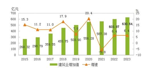 圖4 2015-2023年建筑業(yè)增加值及其增長速度
