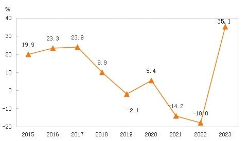圖5 2015-2023年全社會(huì)固定資產(chǎn)投資增長速度