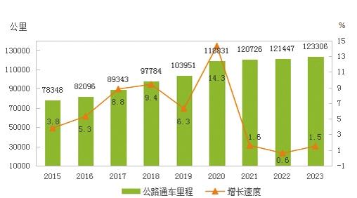 圖8 2015-2023年公路通車?yán)锍碳捌湓鲩L速度