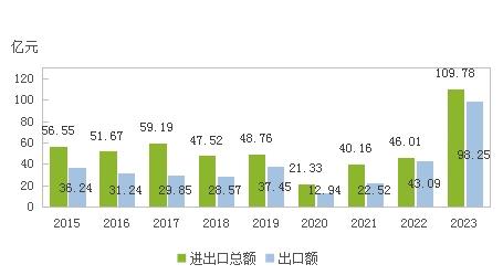 全年貨物貿(mào)易進(jìn)出口總額109.78億元,比上年增長138.3%。其中,出口98.25億元,增長127.7%;進(jìn)口11.53億元,增長295.2%。一般貿(mào)易進(jìn)出口82.29億元,增長166.5%。其中,出口72.23億元,增長157.3%;進(jìn)口10.06億元,增長258.4%。邊境小額貿(mào)易進(jìn)出口26.70億元,增長78.6%。其中,出口25.88億元,增長73.2%;進(jìn)口0.82億元,增長98.7倍。
