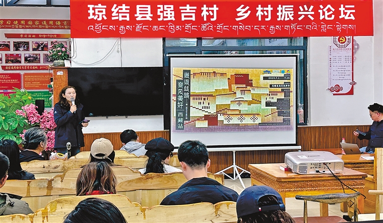 圖為瓊結縣在拉玉鄉(xiāng)強吉村“黨群小茶館”服務平臺舉辦鄉(xiāng)村振興論壇。記者 汪純 攝