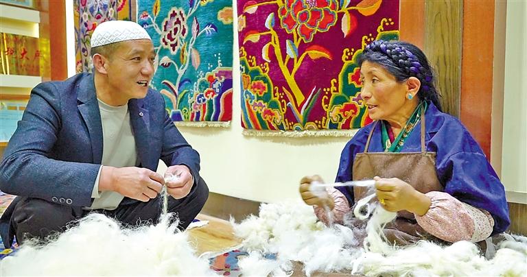 圖為江孜縣組織開(kāi)展民族文化、民族手工業(yè)、民族飲食、民族服裝等沉浸式體驗(yàn)活動(dòng)。這是回族群眾在體驗(yàn)傳統(tǒng)服裝制作工序。