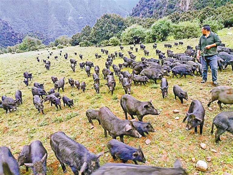 圖為鄉(xiāng)源藏香豬養(yǎng)殖農民專業(yè)合作社養(yǎng)殖的藏香豬。記者 胡文 攝
