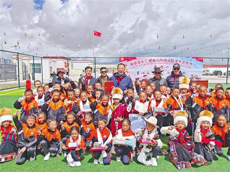 沈陽市第十批援藏工作隊(duì)員與安多縣扎仁鎮(zhèn)小學(xué)師生一起慶祝六一兒童節(jié)。