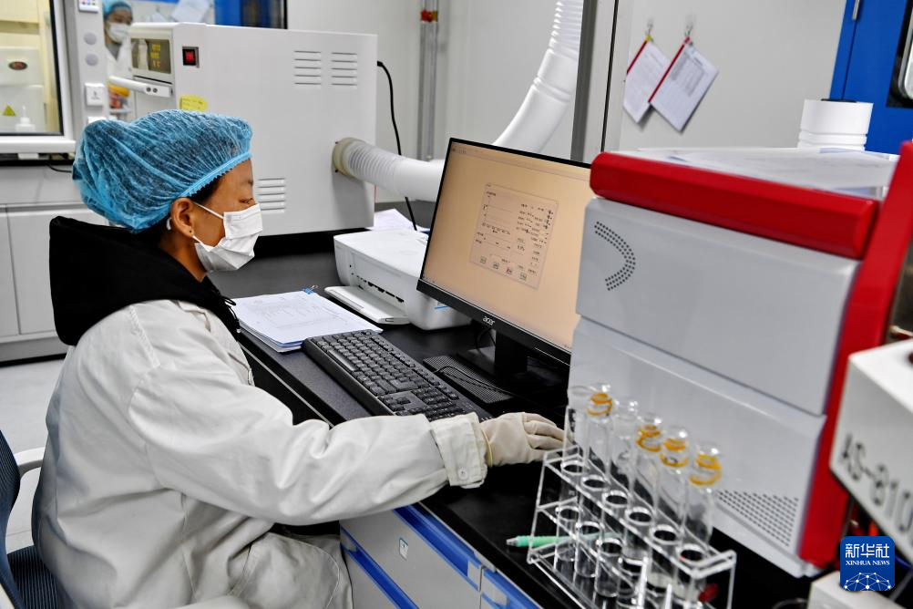 嘎確生態(tài)畜牧業(yè)發(fā)展有限責(zé)任公司檢驗(yàn)人員在對(duì)牛奶中的污染物進(jìn)行檢測(cè)(8月24日攝)。新華社記者 張汝鋒 攝