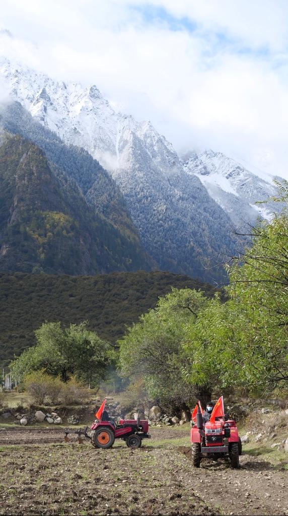 每年10月,是西藏那曲市嘉黎縣尼屋鄉(xiāng)播種冬小麥的時節(jié)。忠玉村村民索朗益西和鄉(xiāng)親們開著拖拉機(jī)翻土備耕。