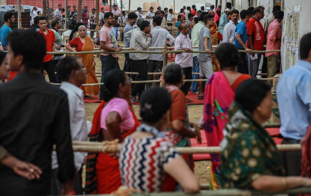 2019年4月29日,在印度孟買,人們排隊投票。新華社發(fā)