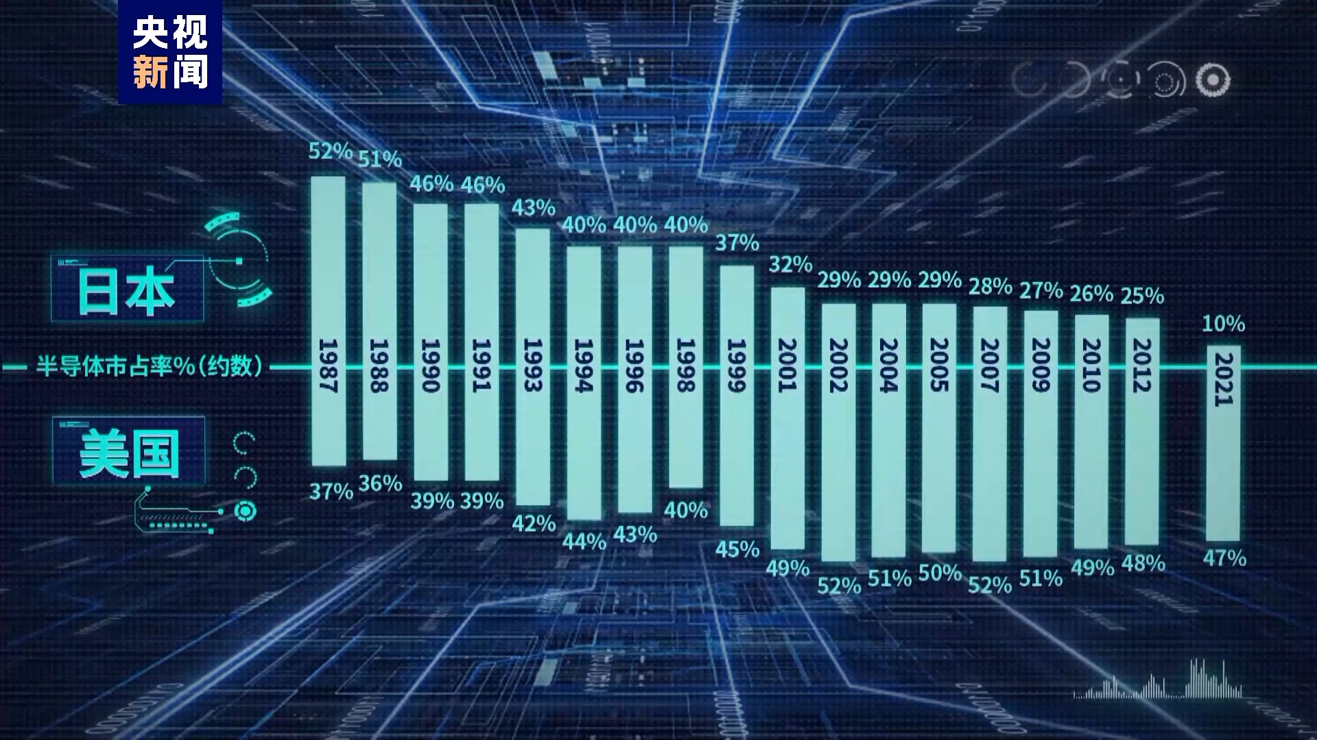 當(dāng)我們?cè)贏I數(shù)據(jù)庫(kù)中搜索全球半導(dǎo)體產(chǎn)業(yè)的發(fā)展趨勢(shì),系統(tǒng)為我們生成了這樣一張圖。以1987年為分界線,日本半導(dǎo)體產(chǎn)業(yè)進(jìn)入消沉的30年,美國(guó)卻開(kāi)始迅速崛起,最終重新實(shí)現(xiàn)壟斷。