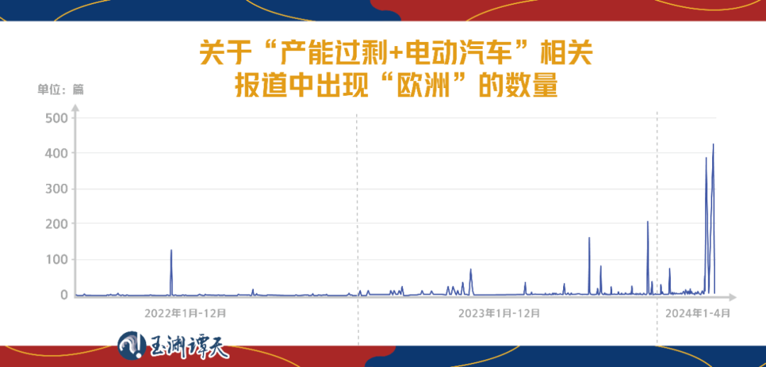 為了拆解美方的敘事套路,我們又定向對所謂中國“產能過剩論”的報道中有關“新能源汽車”報道的趨勢變化進行了分析。