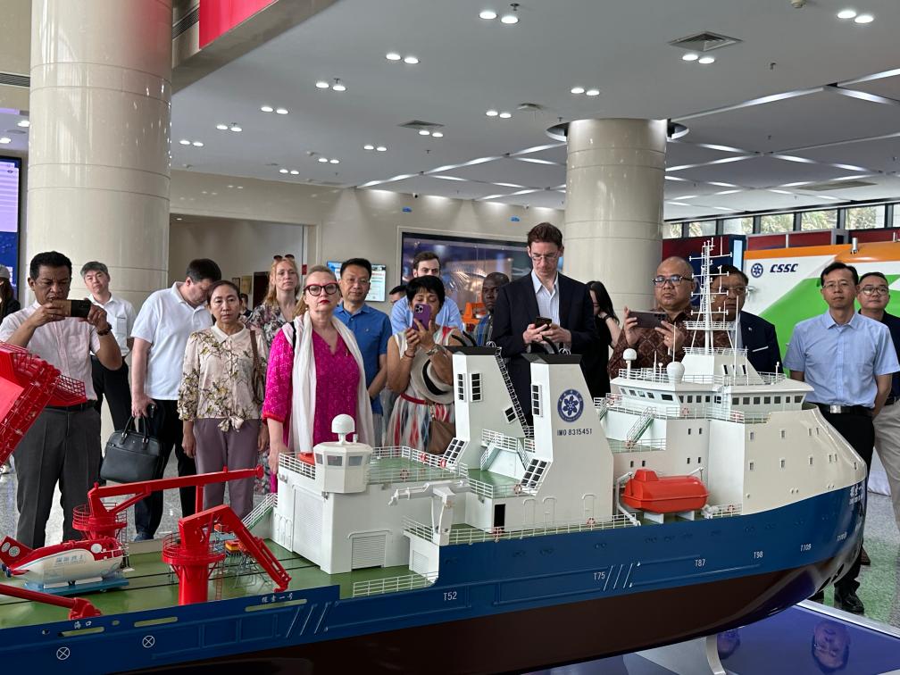 圖為駐華使節(jié)在中國科學(xué)院深??茖W(xué)與工程研究所參觀。新華社記者 袁睿 攝