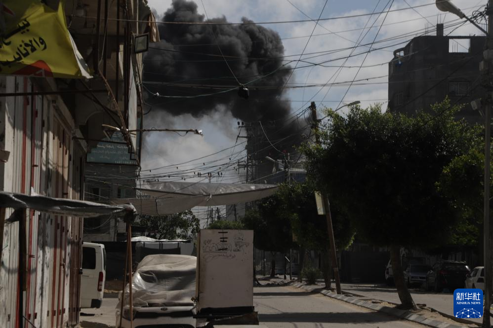 5月13日,在加沙地帶北部杰巴利耶難民營,以軍轟炸后升起濃煙。新華社發(fā)(阿卜杜勒拉赫曼·薩拉馬攝)