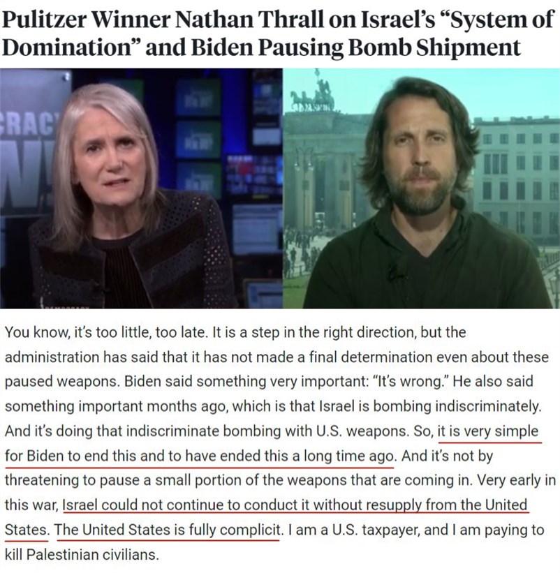對(duì)此,常駐耶路撒冷的美國記者兼知名作家內(nèi)森·薩爾一針見血地指出,對(duì)于拜登來說,結(jié)束這一切其實(shí)很簡單,而且早該結(jié)束了,不必像現(xiàn)在這樣通過威脅暫停供應(yīng)一小部分武器來實(shí)現(xiàn)。