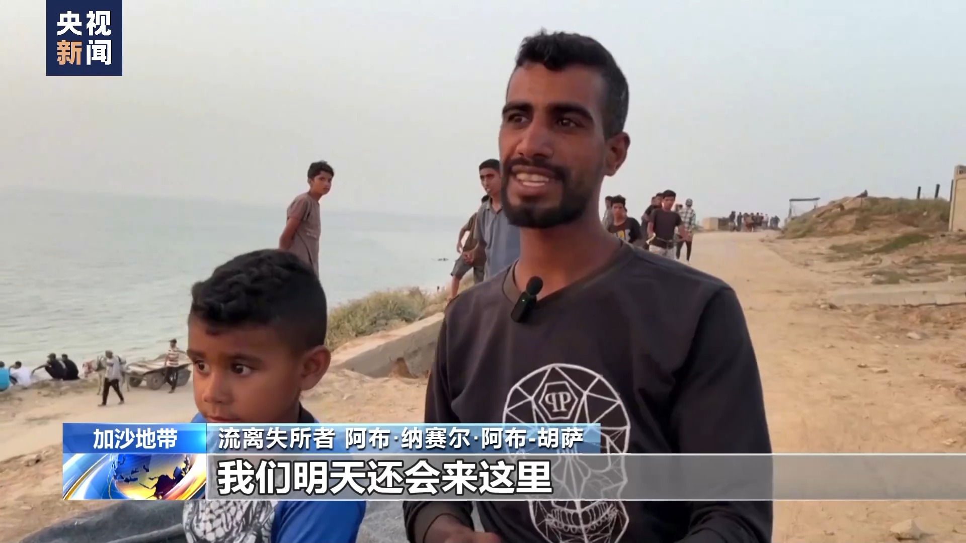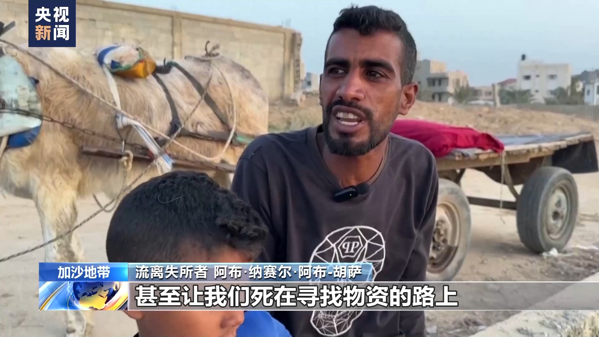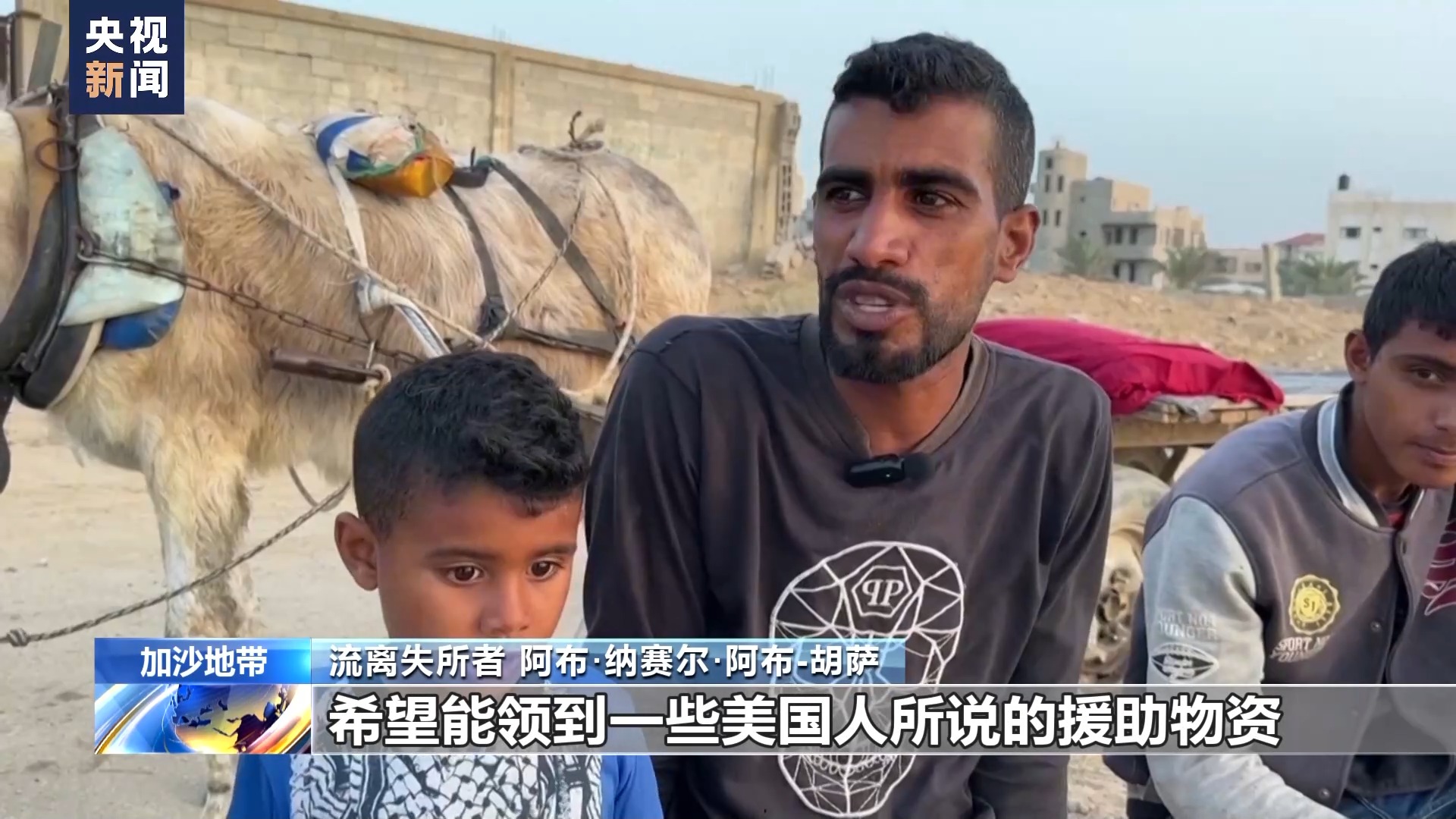 流離失所者 阿布·納賽爾·阿布-胡薩:我們明天還會來這里,看看能不能領到援助物資,幫助我和孩子們活下去。