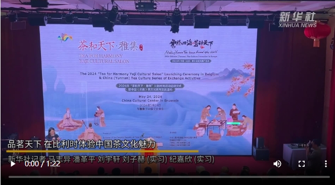 “茶和天下·雅集”云南茶文化交流活動(dòng)24日在比利時(shí)布魯塞爾中國(guó)文化中心舉辦?;顒?dòng)以茶為媒,通過茶主題文藝展演、茶文化詩(shī)詞分享會(huì)、中國(guó)國(guó)家級(jí)非遺技藝展示和體驗(yàn)等多種形式,吸引比利時(shí)民眾感受中國(guó)茶文化的魅力。