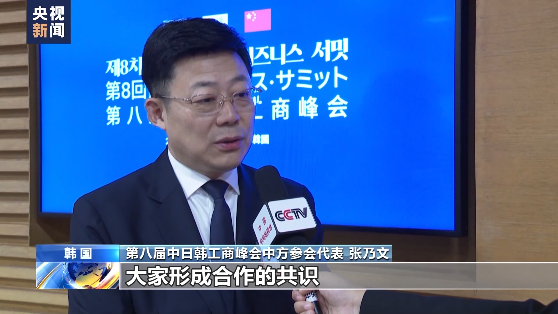 第八屆中日韓工商峰會中方參會代表 張乃文:希望通過這次峰會,我們未來在清潔能源、人工智能、健康醫(yī)療等產(chǎn)業(yè),大家形成合作的共識,充分利用各自的資金、技術(shù)、資源等優(yōu)勢,加快形成一次新的合作項(xiàng)目。