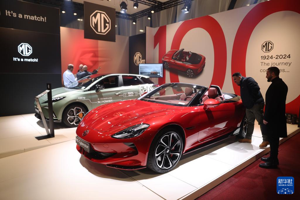 2024年1月17日,人們在比利時布魯塞爾舉辦的2024布魯塞爾汽車展上參觀上汽名爵電動汽車。新華社記者 趙丁喆 攝
