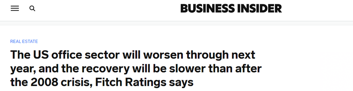 惠譽稱:“與2008年全球金融危機之后相比,此輪周期中寫字樓行業(yè)的復(fù)蘇將更加緩慢、耗時,并將導(dǎo)致美國房地產(chǎn)價值永久性受損、業(yè)績表現(xiàn)疲軟以及貸款損失增加。”