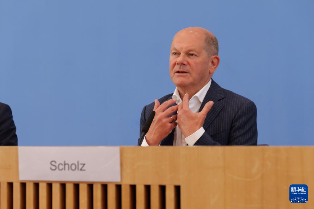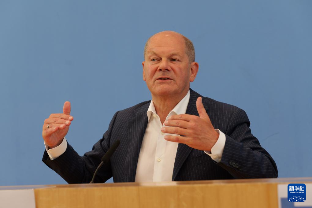 7月24日,德國(guó)總理朔爾茨在柏林舉行的新聞發(fā)布會(huì)上講話(huà)。新華社記者 李函林 攝