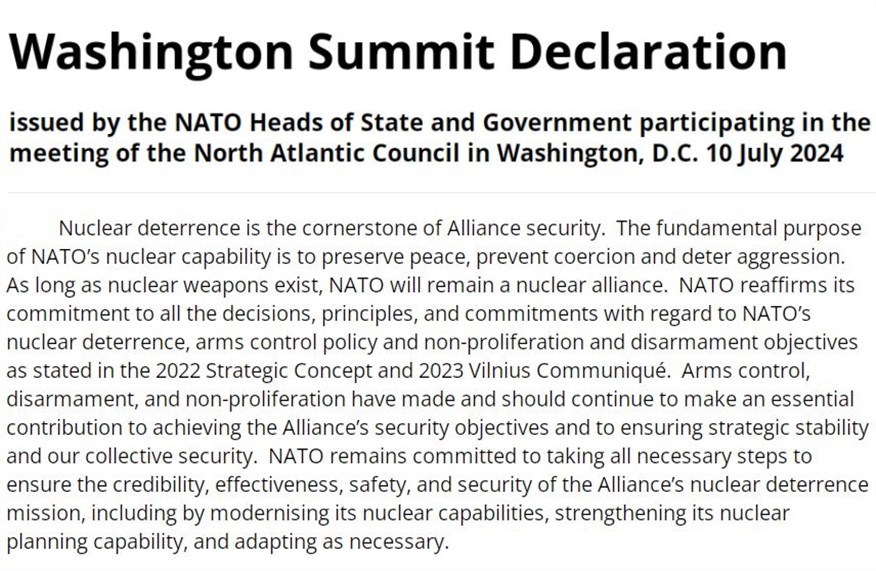 根據(jù)本月早些時(shí)候北約華盛頓峰會(huì)的最后聲明,作為威懾俄羅斯等戰(zhàn)略對手的重要措施之一,北約決定進(jìn)一步強(qiáng)化核實(shí)力。