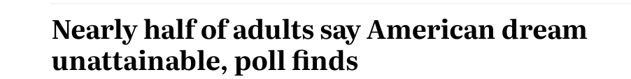 位于哥倫比亞特區(qū)的公共政策中心阿奇布里奇研究所(Archbridge Institute)在2023年7月的一份調查報告中稱,接受調查的24%的成年人表示,美國夢對他們來說“遙不可及”,這一比例高于2022年的18%。