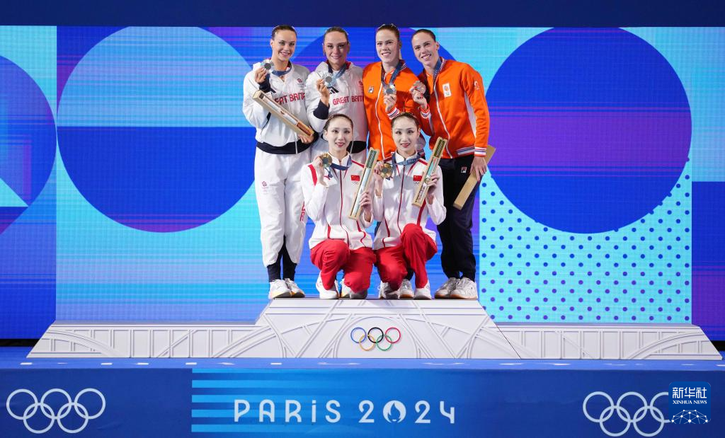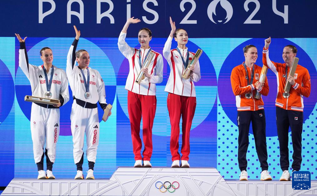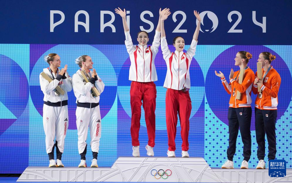 當(dāng)日,巴黎奧運(yùn)會(huì)花樣游泳雙人項(xiàng)目的最后一項(xiàng)比賽雙人自由自選在巴黎奧林匹克水上運(yùn)動(dòng)中心舉行。中國(guó)組合王柳懿/王芊懿奪得冠軍。