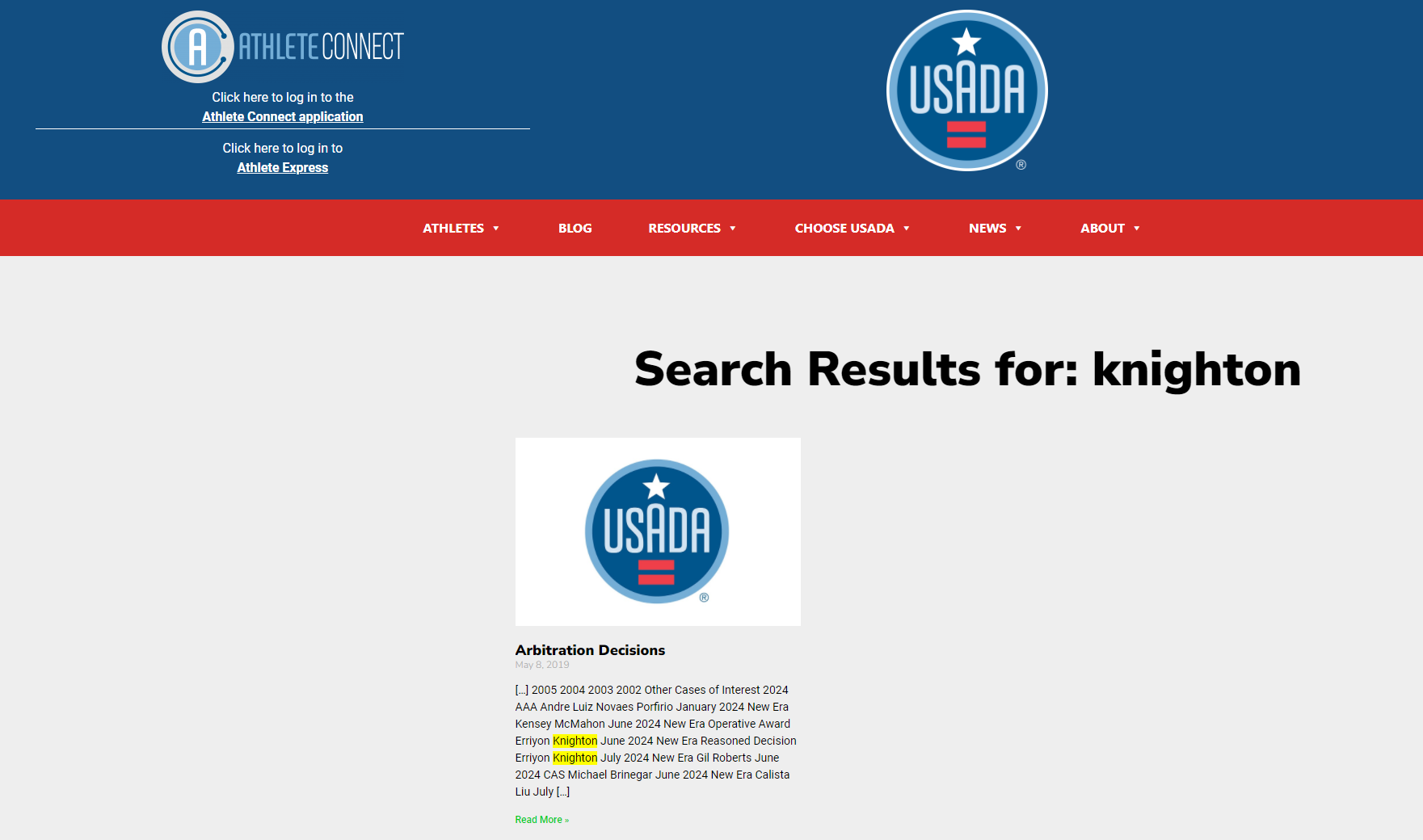 △現(xiàn)在在美國反興奮劑機(jī)構(gòu)官網(wǎng)搜索,已經(jīng)找不到聲明,只能找到必須留存的仲裁記錄