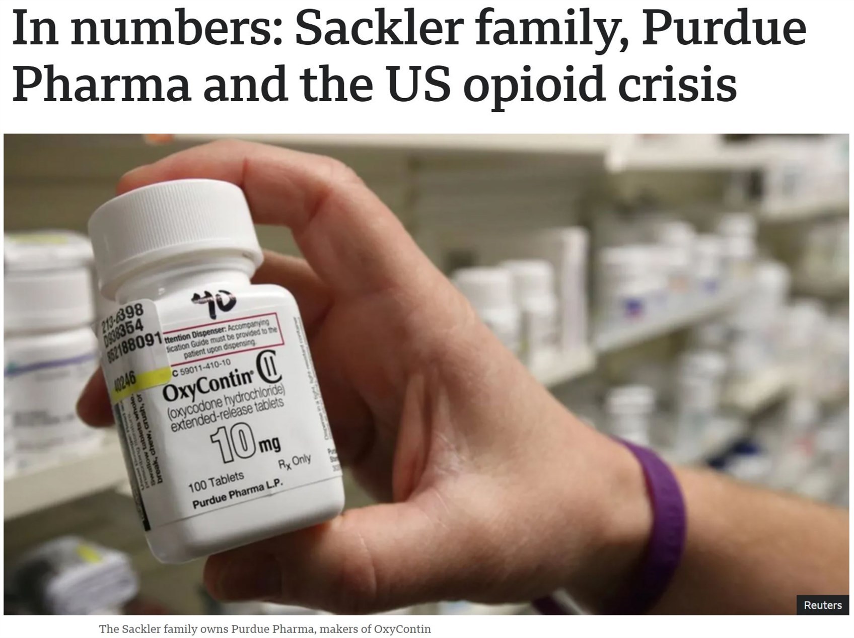 1996年,薩克勒家族旗下的普渡制藥公司研發(fā)出了新型止痛藥——奧施康定。這一新藥極易造成藥物上癮,但薩克勒家族卻與美國(guó)食品藥品監(jiān)督管理局勾結(jié),隱瞞該藥品的成癮性,靠大規(guī)模地宣傳、分銷奧施康定發(fā)家,在20年的時(shí)間里積累了數(shù)百億美元的資產(chǎn)。與此同時(shí),奧施康定卻導(dǎo)致700萬人成癮,50萬人死亡,大批病人精神抑郁,甚至走上犯罪道路。
