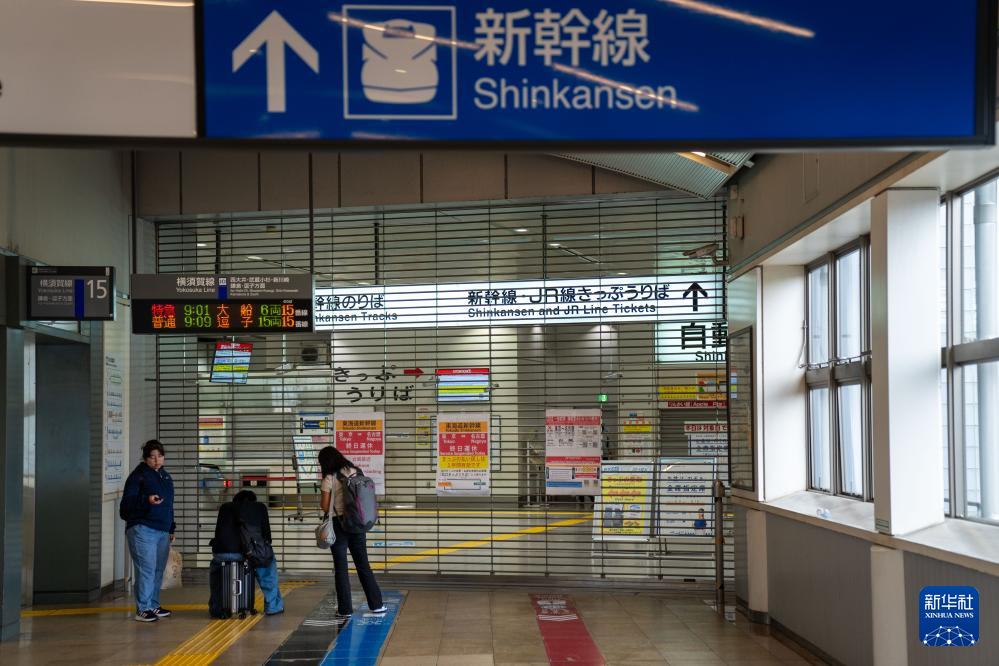 8月16日,乘客站在關閉的日本東京品川新干線站點旁。新華社記者 張笑宇 攝